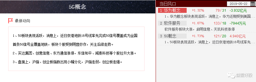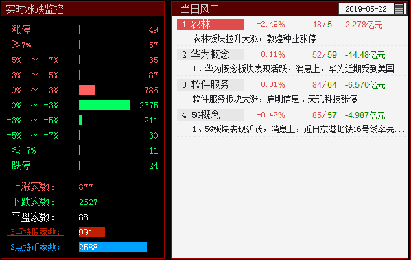 板块方面:5G概念、软件服务、牧渔等、家电等涨幅居前,有色金属、汽车制造、黄金等跌幅居前。