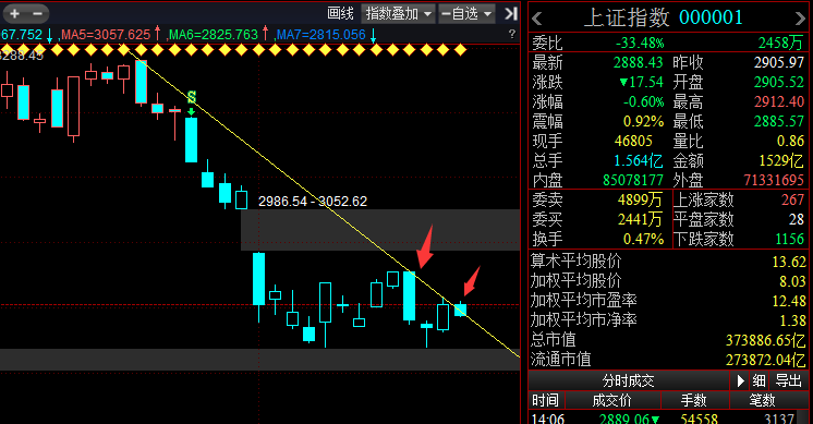 14:41 尾盘大盘出现分时背离,今天收盘关键是看2900点的得失,如果失守2900点,短线吧排除再探年线。
