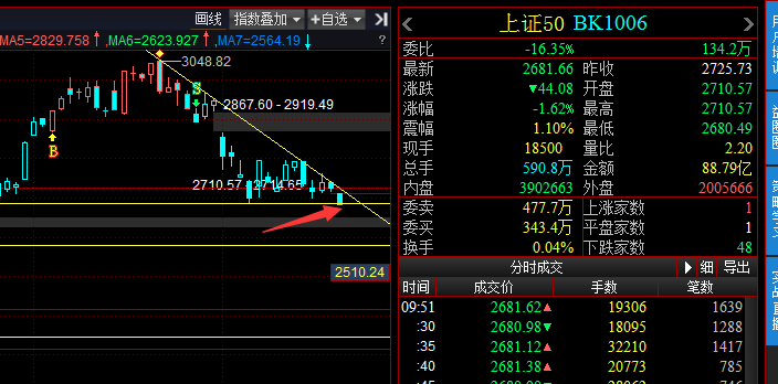 9:53 上证50指数破位,走的很难看啊,那么,权重可能会拖累指数走势,大家严格控制仓位。