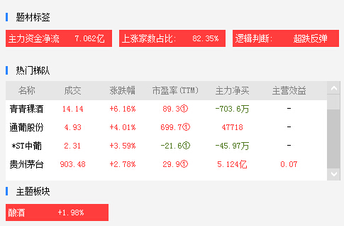 13:38 酿酒板块午后持续拉升,热门梯队如下