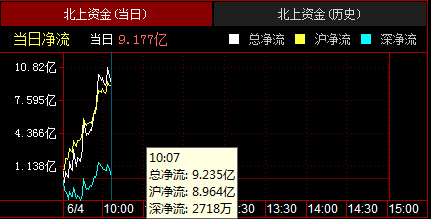 10:07 外资目前已经是第三天连续流入,从5月的连续流出到6月以来的连续流入,大家可以多加关注外资的动向。