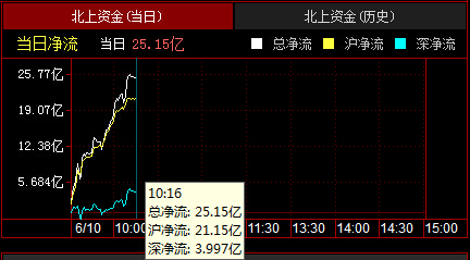 10:16 外资今天继续买买买,截止到目前净流入25.15亿。