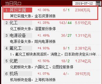 其他采掘站上当日风口,该板块共7只个股,其中仅是资源领涨。