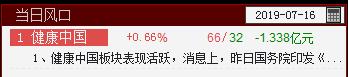 健康中国行动获多项政策支持,实施健康中国行动的意见将利好大健康行业,尤其是有利于生物医药行业的发展。早盘信隆健康、泰和健康、德展健康以及宜华健康纷纷涨停,还有其它带健康二字的股票也走势强劲,资金快速流入明显,短线保持关注健康中国题材股。