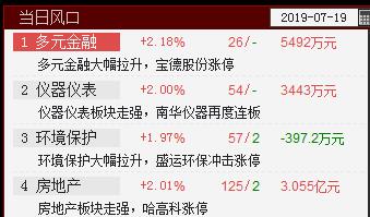 房地产、环境保护、仪表仪器、多元金融站上当日风口,大盘指数带动市场人气。