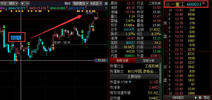 三一重工上半年净利润为65-70亿元,同比增长92-107%。其次,中联重科中报净利润预增172-212%,为24-27亿元;徐工机械中报净利润预增90-117%,为21-24亿元。工程机械三巨头中报业绩的高成长带动资金对板块的关注,拉动市场预期。然而,该板块近期累计一定涨幅,不建议大家追进,通过对工程机械板块分析,只是希望大家明白良好的基本面才是股价增长的基石。