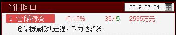 仓储物流站上当日风口,该板块7月19日第一次站上风口,今天是第二次。