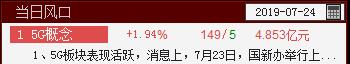 5G概念站上当日风口,消息上,7月23日,国新办举行上半年工业通信业发展情况新闻发布会。