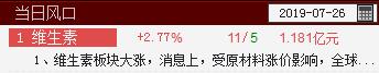 维生素站上当日风口,对应入选【策略+风口】个股有1个,更多详情请到智盈软件查看