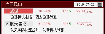 航天国防、旅游站上当日风口,关注相关个股。更多详情请到智盈软件查看