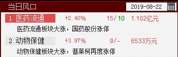 国药股份强势封板,2019年上半年实现营业收入210.22亿元,较上年同期增长11.99%。今天价量配合良好,启动信号明显。