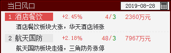 航天国防、酒店餐饮站上当日风口