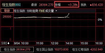 香港恒生指数午后大涨近4%,蓝筹股全线走高,地产股大幅反弹。