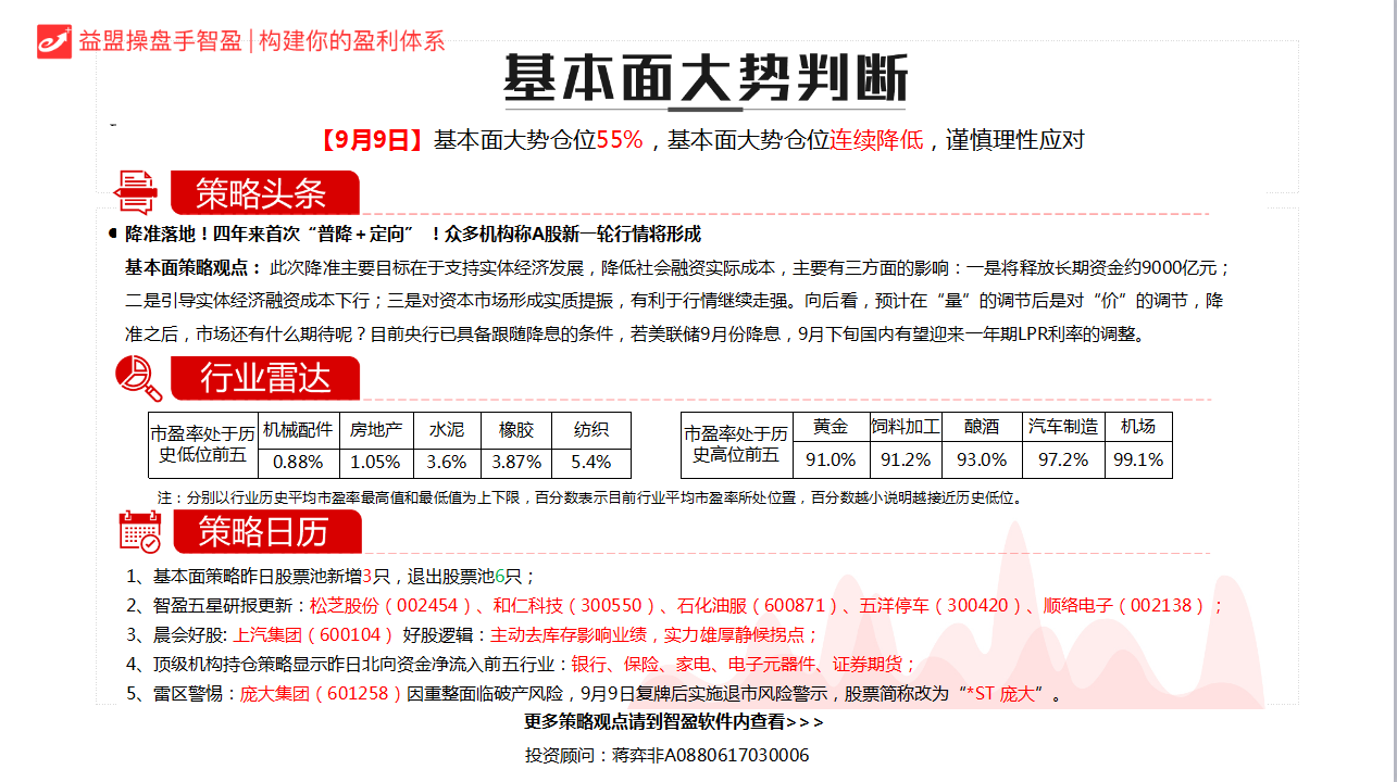 1、央行:全面降准0.5个百分点+定向降准1个百分点,释放长期资金约9000亿元;