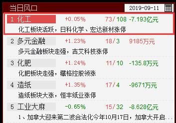 化工入选当日风口,今日基本都是补涨行情