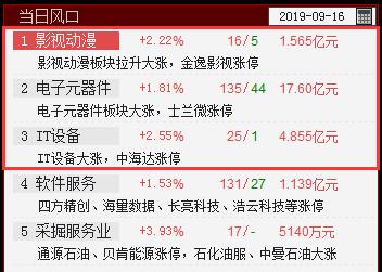 IT设备、电子元器件、影视动漫入选当日风口,关注板块内相关低位个股