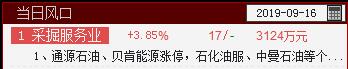 采掘服务业入选当日风口,该板块系长假期间沙特阿美受无人机攻击消息影响,但今日板块多高开低走,持续性有待观察