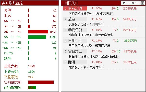 【智盈】软件提示:个股方面今日触及涨停家数45家,触及跌停家数仅5家,操盘线日线今日新发出B点信号家数32家,全部B点持股家数2735家