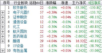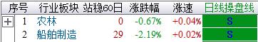 【智盈】软件总结:农林与船舶板块进入日线S点调整状态,注意规避风险;目前两市仅铁路运输处于5日资金净买状态;对于5日净卖前十板块,今日仅酿酒板块出现资金回流并操盘线出现B点,可关注板块内低位个股;对于前期涨幅过大的其余板块,仍需提防阶段性回调