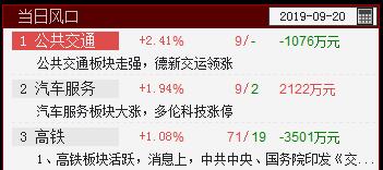 早盘,高铁、汽车服务、公共交通入选当日风口,这些板块都和刚发布《交通强国建设纲要》有关