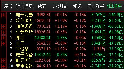资金方面今日两市5日净买及5日净卖前十板块如下: