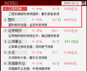 塑料、工程机械入选当日风口,这些都属于估值较低的板块
