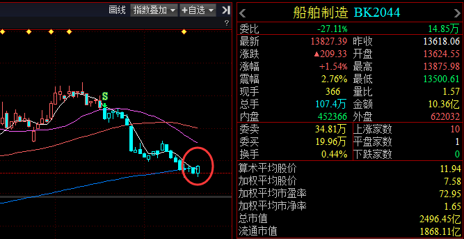 船舶制造入选当日风口,从图形上看,该板块纯属跌到关键点位企稳反弹