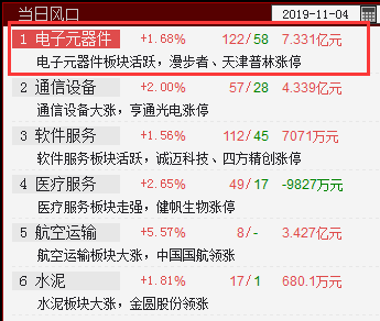 电子元器件也启动了,入选当日风口,数据显示今日目前资金净流入7.3亿元