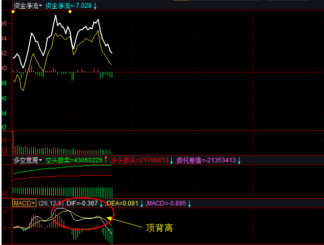 大盘分时上出现顶背离信号,注意!