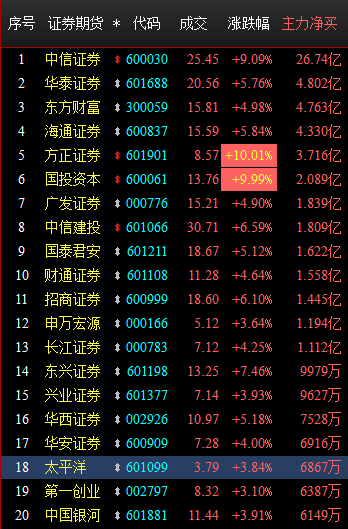 券商方面,早盘我们提示中信证券、海通证券、华泰证券,这是从资金方面。除此之外,其实天风证券、中信建投也可以关注,这两家在投研方面还是很大胆,在改革浪潮下还是有看点。
