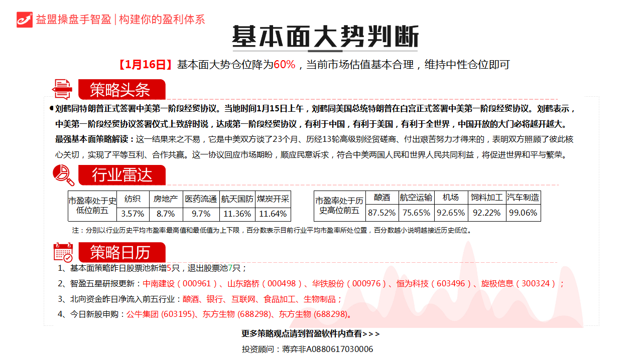 美股昨晚再次刷新历史新高,今日上证继续观察3100点区间突破力度。第一阶段协议顺利签署,毫无疑问是利好,早盘有望高开先拉一把,但很可能冲高仍会回落。节前还有6个交易日,盘面已经有明显的节前气氛了,成交量继续减少,资金有点无心恋战,节前应该是缩量震荡的行情。建议关注网红经济、科技、特斯拉3大主题内部的轮动机会。