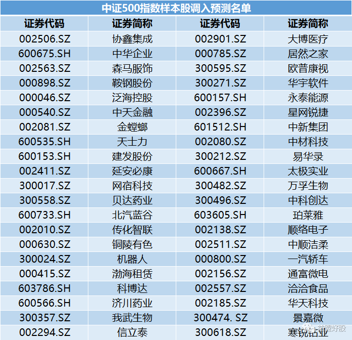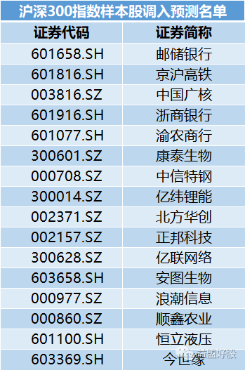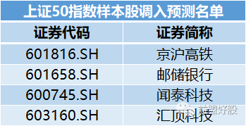 截至目前,据不完全统计,已有8家券商给出此次样本股调整的预测名单。总体来看,根据预测,京沪高铁、邮储银行等16只个股将会被调入沪深300,协鑫集成、中华企业、森马服饰等42只个股会被调入中证500。具体情况如下: