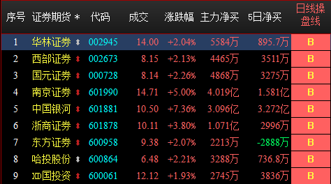 今日【证券期货BK2070】共9只个股操盘线日线出现B点信号,如下图: