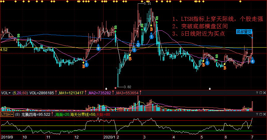 该股今日入选【底部量变】策略池,下图看,该股LTSH指标上穿天际线,走强概率大,其次,突破底部横盘区间,短线止损参考操盘线日线,操作参考操盘线30分钟及60分钟线