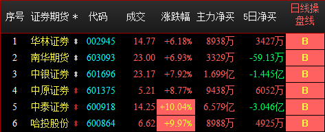 今日【证券期货BK2070】共6只个股操盘线日线出现B点信号,如下图: