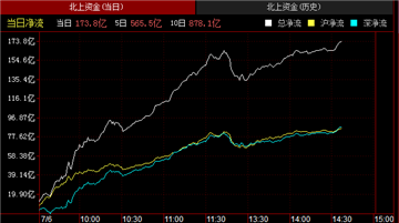 北向资金流入173亿,沪深两市成交额突破1.42万亿,创5年新高,富时中国A50指数期货持续拉升,现涨超7%。