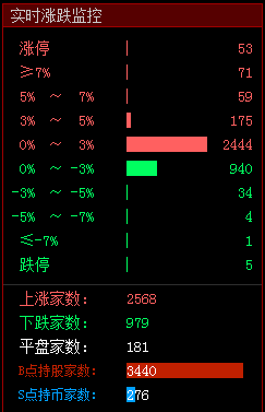 开盘两市上涨率为69%,对于盘中涨幅过大的个股谨慎追进~