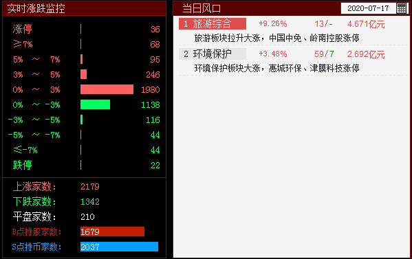 目前两市上涨率为58.4%,处于情绪修复中,当日风口入选2板块,其中环境保护大家可以多关注一下,目前三峰环境601827操盘线出现B点,与昨日的S点形成BS反转~但最终确认还是需要到收盘~