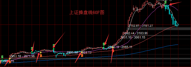 对于何时能进场这个问题,从短线角度来看,一般来说,至少日线得站稳5日线才算调整结束,当然,我们还能从30F、60F跟快的角度来观察指数的多空迹象,对于新手来说,可以参考操盘线的提示,以下是上证60F操盘线图,判断大盘多空,还是十分精准的~