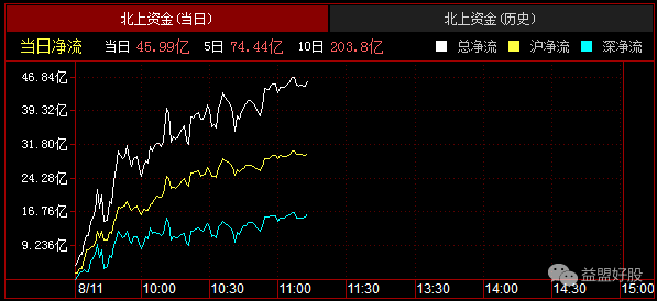 北资目前净流入46亿,从北资目前的走势看,今天买入坚决~