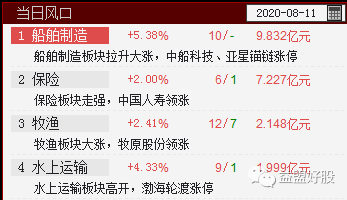 目前风口有两个:牧渔、水上运输,上涨率为39%