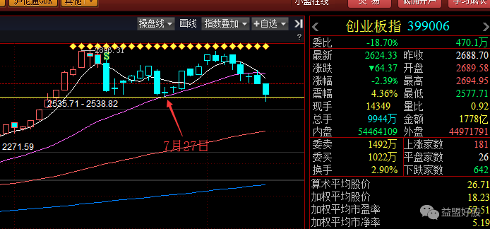 参考7月27日,创业板指在小周期将形成M顶的位置收盘守住颈线位,随后一波反弹,这波杀跌的颈线位在2606点,因此,收盘价要守住这个点位才不至于破位~