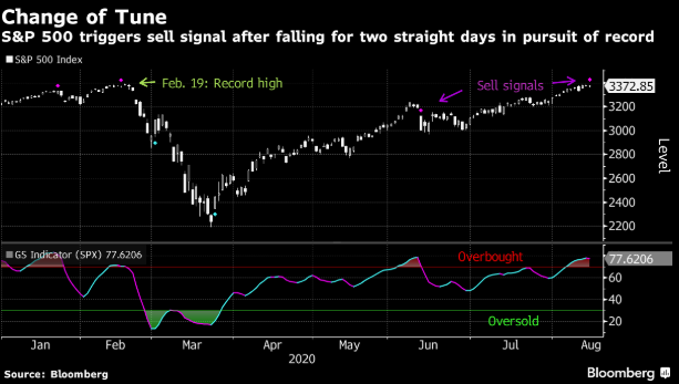 【看图:标普500指数错过历史之约 反倒发出了卖出信号】创纪录收盘让美股上周躲过了一劫。标普500指数以两连跌给一周交易画上了句号,期间衡量连续收盘价涨跌动能的指标GTI Global Strength Indicator发出了技术性卖出信号。基准股指上次达到如此程度的超买并发出同样的警示信号是在6月,那一次随着可能出现的第二波新冠疫情使投资者深感不安,该指数当天下跌了将近6%。事实证明那次下跌只是暂时的,自那以后至今该指数已累计上涨逾12%。