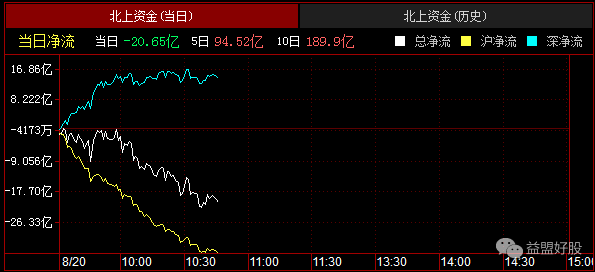 目前北资净流出20亿,但深股通是净流入14亿的,主要是沪股通净流出34亿~从昨天开始,北资又出现净流出,这就使得市场方向又变得扑素迷离了~