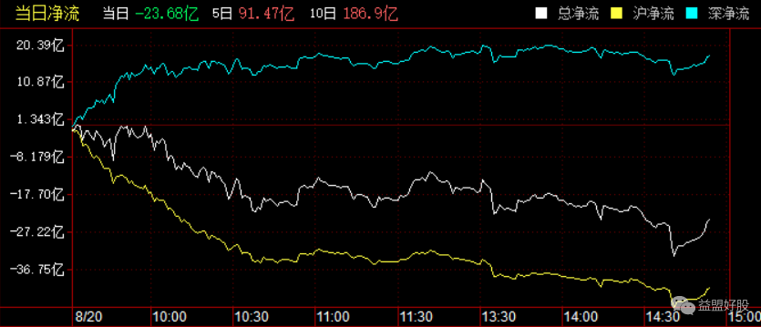 目前北上资金净流出23.68亿,今天流入方向主要是深市,正因为如此,所以创业板低开之后能够横住,但是破位也是真的。