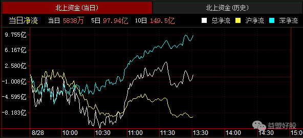 早盘一波净流出后,北资恢复净流入,之前北资已经保持5个交易日净流入