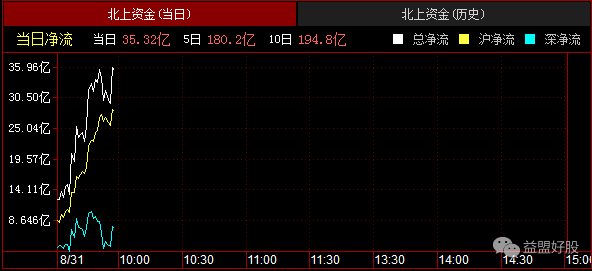 北资早盘净流入35亿,目前看做多坚决,成为盘中做多基石~