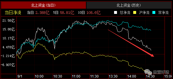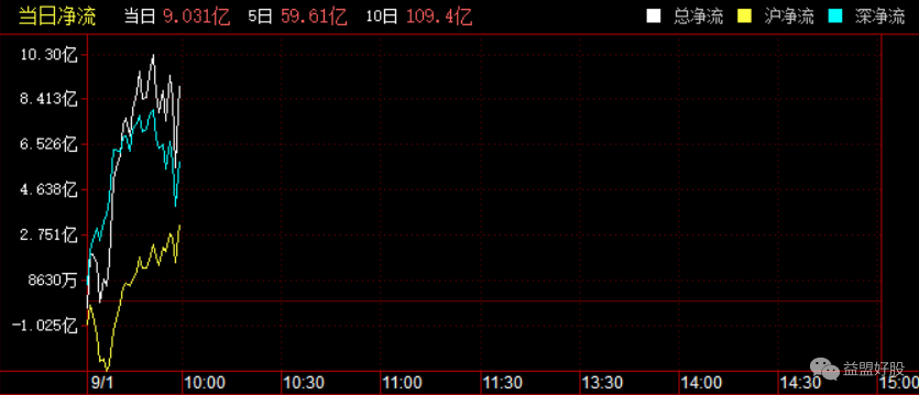 目前北上资金净流入9亿。