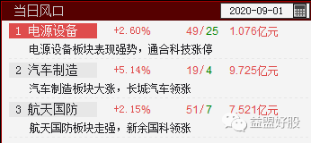 当前仅电源设备、汽车制造、航天国防3板块入选风口,今日做多情绪不高~
