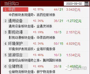 当日风口目前入选6板块,其中中药、影视动漫、环境保护、旅游综合受短线资金净流入